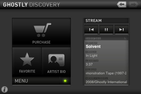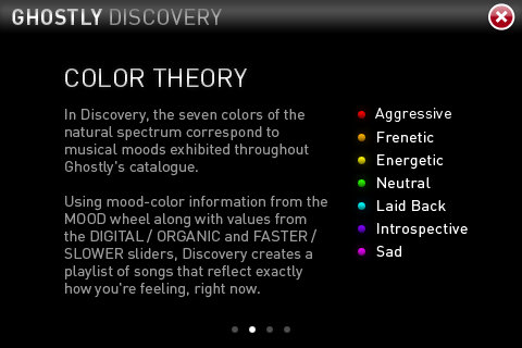 Ghostly Discovery es una aplicación que nos permite escuchar música del tipo electrónica según nuestro estado de ánimo, ya que cada color significa un estado y un tipo de música diferente.