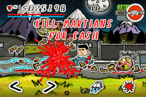 Como se ve en las imágenes, los gráficos son en plan dibujo animado y no se ha escatimado en pintura roja para los marcianos reventados.