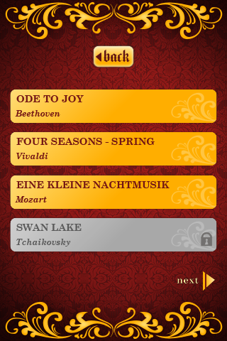 Al acabar la cación, veremos la puntuación que hemos obtenido e iremos desbloqueando hasta 11 nuevas canciones, como las Cuatro Estaciones de Vivaldi o el Canon de Pachebel.