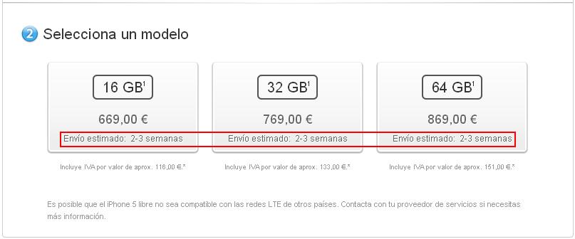 Al anterior modelo, el iPhone 4S, le llevó alrededor de 3 meses en bajar de las 1-2 semanas de estimación de envío, alcanzando el equilibrio entre la oferta y la demanda unos tres meses y medio más tarde. Pero ahora que el iPhone 5 está experimentando estimaciones más largas de envío, puede que los retrasos persistan durante algún tiempo más.