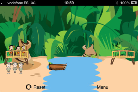 - Los caníbales: debes transportar a un número determinado de caníbales y exploradores de un lado del río a otro, teniendo en cuenta que los caníbales no pueden superar en número a los exploradores.