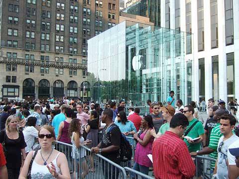 En los vídeos, se observan las grandes colas que suelen formar los usuarios de Apple el día del lanzamiento del dispositivo, en distintas ciudades, hablando sobre sus nuevas características.
