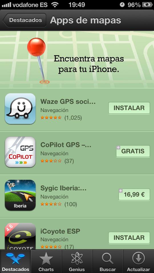 Como podéis comprobar, Tim Cook se disculpa por los fallos cometidos y reconoce estar trabajando en ello para mejorarlos. Pero también propone alternativas mientras mejoran los nuevos mapas: consultar los mapas de Google o Nokia a través de sus páginas web, o descargar otras aplicaciones oficiales de mapas desde la App Store (con categoría destacada propia).