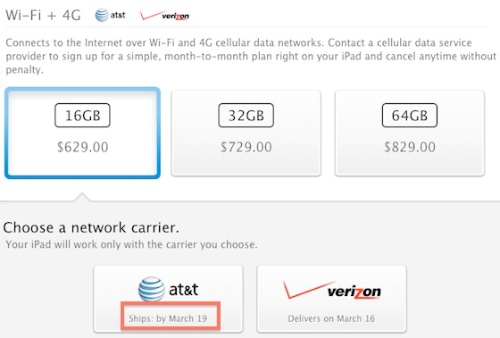 En un principio, en Estados Unidos el iPad iba a ser empezado a enviar el día 16 de este mismo mes, o sea, en poco más de una semana, pero para este modelo que comentamos, la fecha ya anda en el día 19 de marzo, tres días más tarde. En el caso de Japón, también aparece el día 19 como fecha de envío, mientras que en Alemania aparece el día 22.