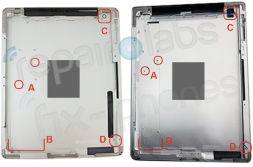 Y para acabar, el punto D, que marca la situación de la montura de la pantalla LCD, es también distinto, lo que también podría dar pie a que la pantalla del nuevo iPad sea distinta a la actual.